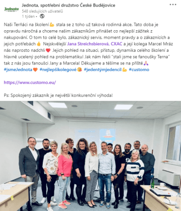 Jednota České Budějovice provozuje 32 prodejen Trefa v jihočeském kraji a 7 supermarketů Terno po celé České republice. Jako každý rok, i na 2024 bylo plánované školení pro vedoucí supermarketů a prodejen,a pro to letošní jsem byla, k mé obrovské radosti oslovena já s projektem Customo.